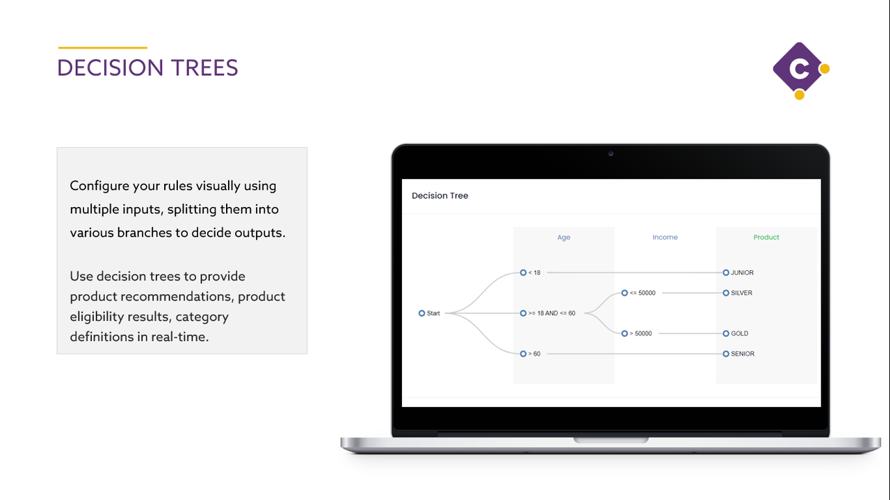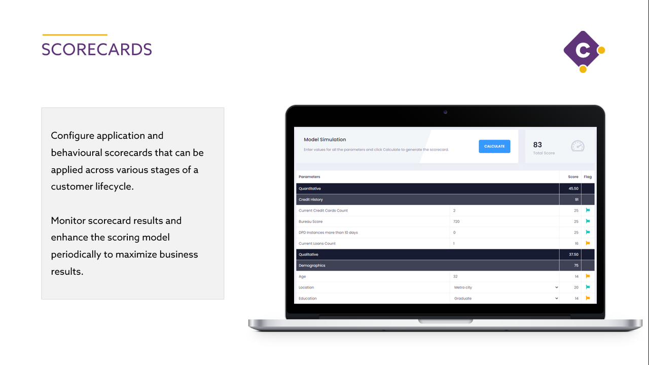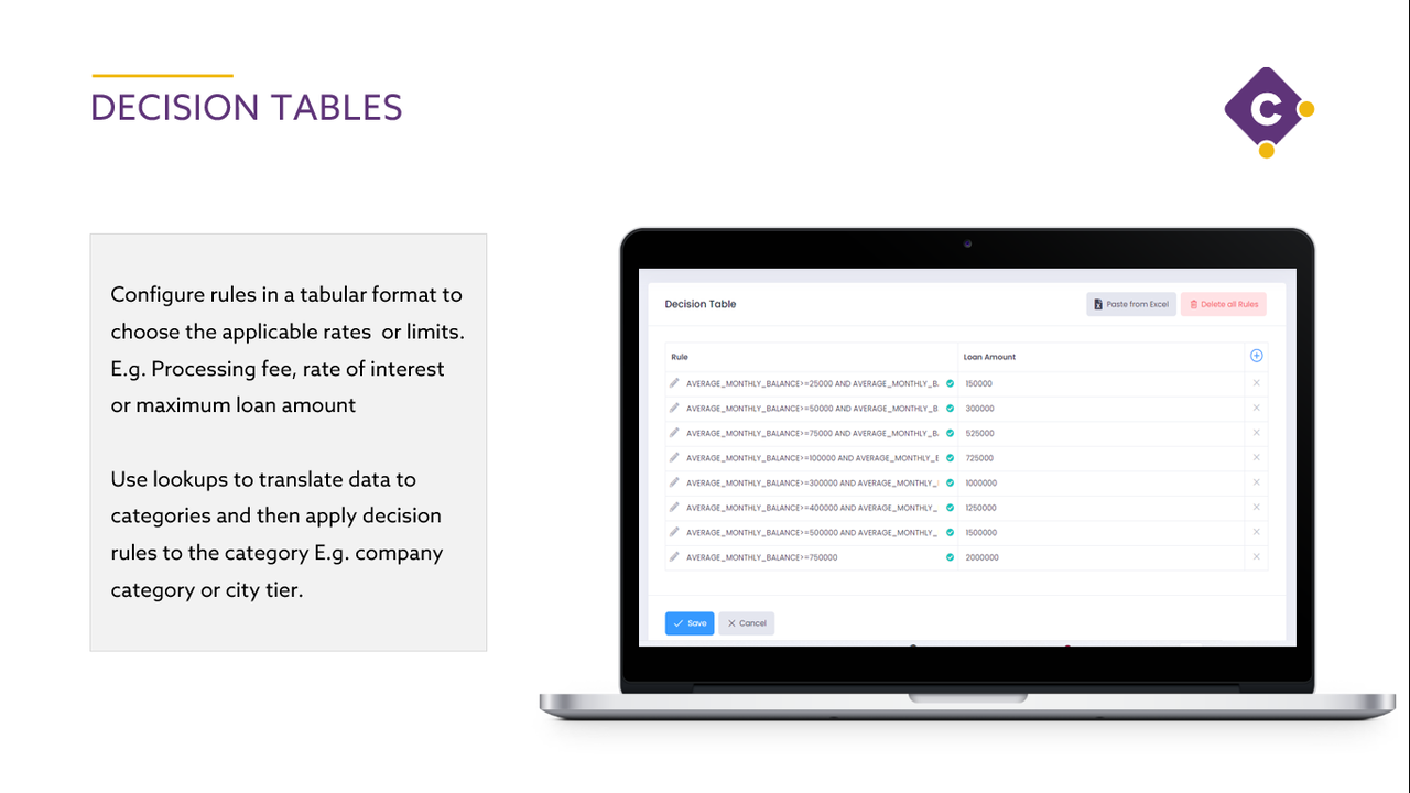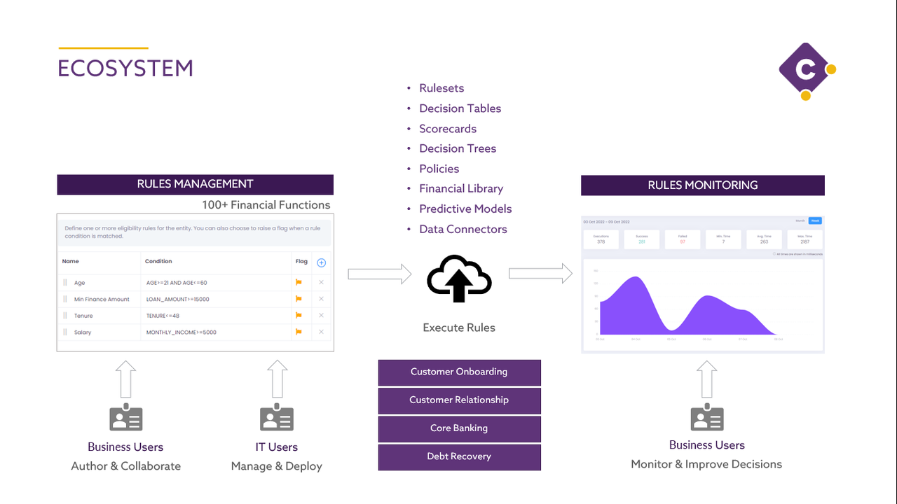 DECIDE is a centralized rules management platform for efficient strategy design and execution in dynamic business environments, across the customer life cycle. It enables business users to build and manage decision flows using scorecards, predictive models ,decision tables, eligibility rulesets and much more. It helps SMEs and Enterprises from BFSI and HealthTech sectors in quick strategy implementations, standardization of policies, AI/ML-enabled personalization for offers and products. It also helps addresses common issues like implementing changes driven by market and regulatory conditions and automating day-to-day decision making across the organization in a smart and yet easier way.