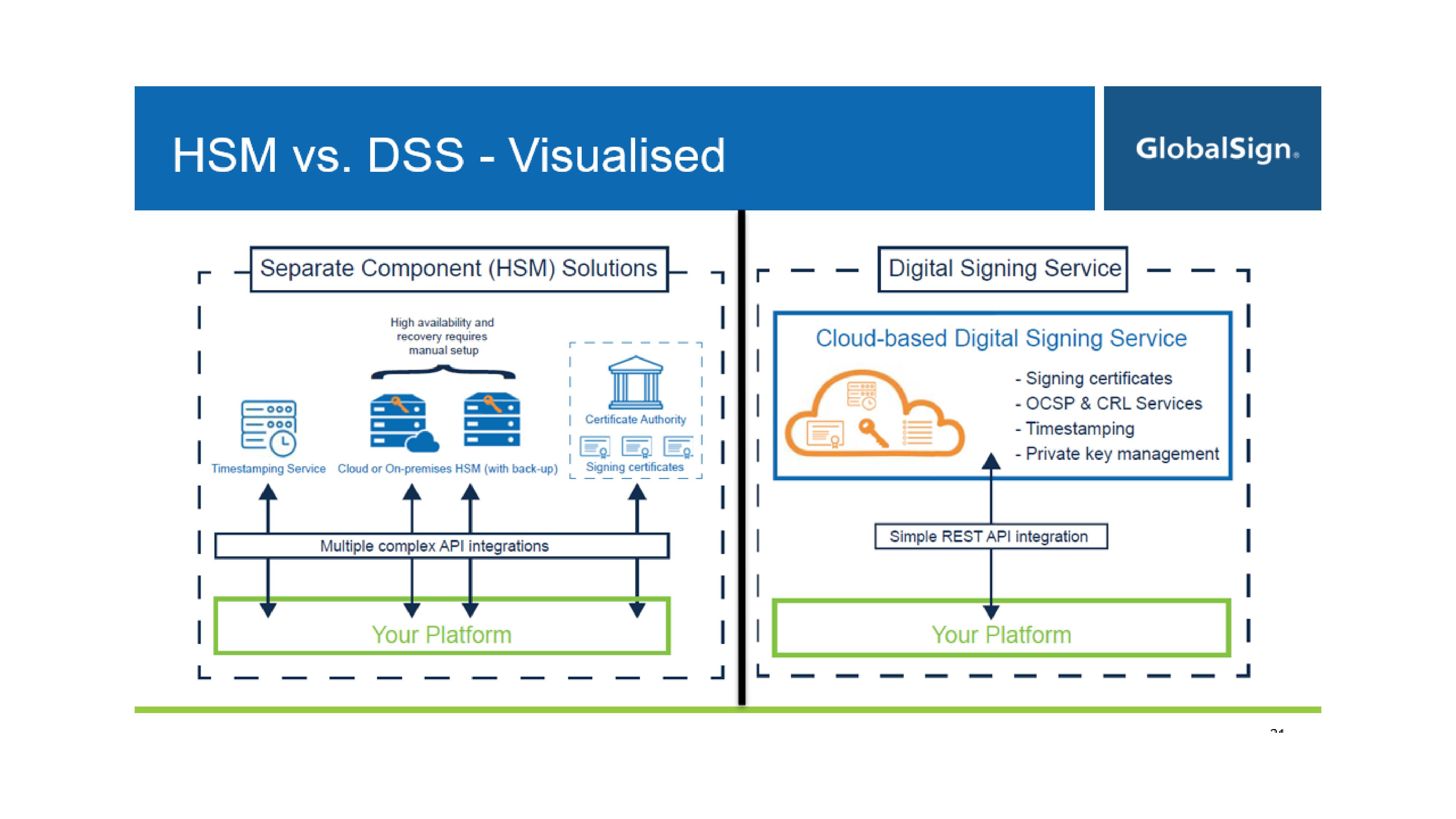 Designed for the modern, distributed workforce, DSS is the simplest way to deploy trusted digital signatures – whether you’re adding them to existing workflows or you’re a service provider extending certificate-based digital signing capabilities to your customers.