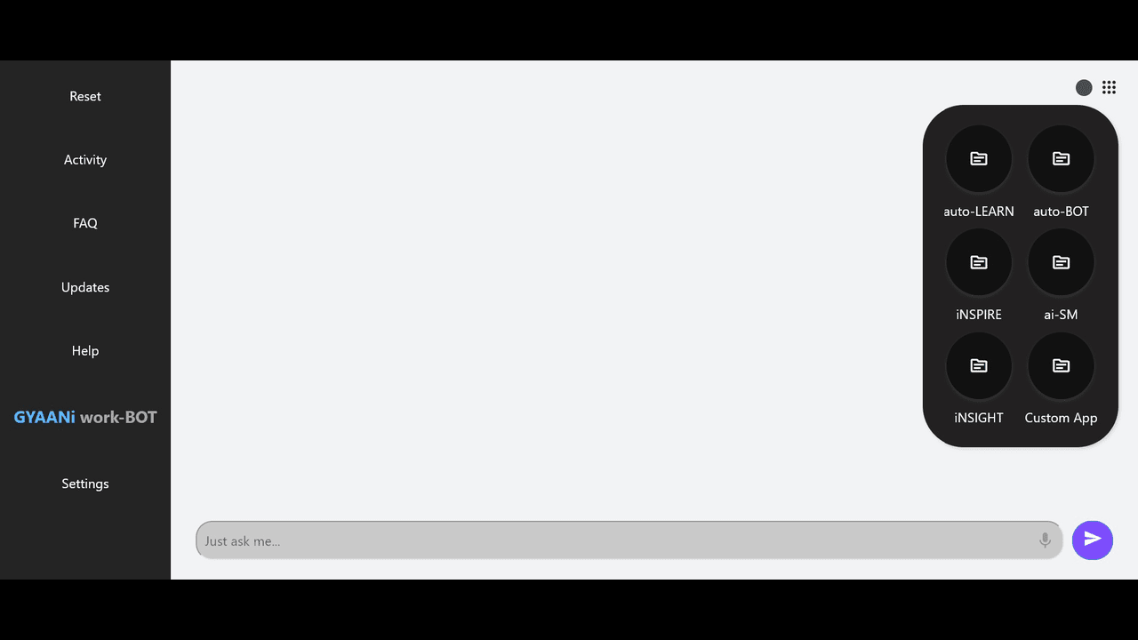 GYAANi work-BOT is an enterprise level AI platform that provides all kind of enterprise level services to the business users as well as IT users. It makes the business user’s life easier by providing a unified single interface – as the digital twin of the business user - to perform all of his/her business tasks while all system and software related activities are performed by GYAANi work-BOT. It makes IT users life easier by delivering all IT related services through intelligent driven automation with least dependency on people driven activities. Overall, it makes an organization self-reliant by moving towards AI-powered “Machine-First” model for all enterprise services. GYAANi work-BOT improves autonomous productivity of the organization by up to 70% aross people, process and customers by providing data driven decisions in real time.